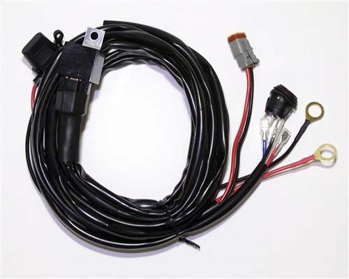 “Each bar will include a 12’ tinned wiring harness with an in-line fuse, relay, and a red on/off rocker switch connected by a waterproof deutsch connector.”