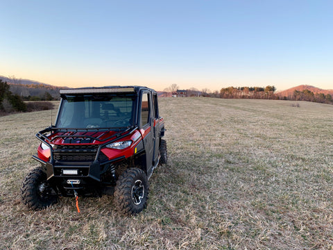 Found some brackets from Extreme Metal Products. They worked great for mounting across the top of the windshield. Had the brackets and light bar professionally installed at my local Polaris certified dealer. (Red Line Power Sports)
