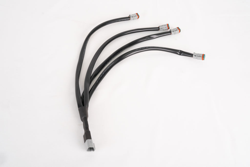 Our 4-piece Connect Cable allows you to connect 4 lights under 30'' in length to one wiring harness, allowing all the lights to power on with one switch. This is a great wiring solution when upgrading your fog lights to our Pod Series lights. Just make sure to upgrade the fuse in your wiring harness to the appropriate size.