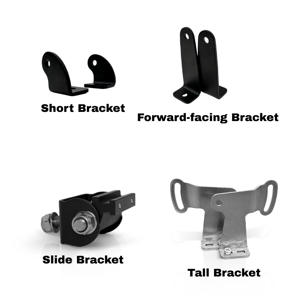 Upgrade your installation with premium marine-grade stainless steel mounting brackets, engineered for durability and versatility. Whether you need a low-profile setup, added clearance, or slide-track flexibility, these brackets are built to fit Black Oak LED Single Row Light Bars with strength and style.